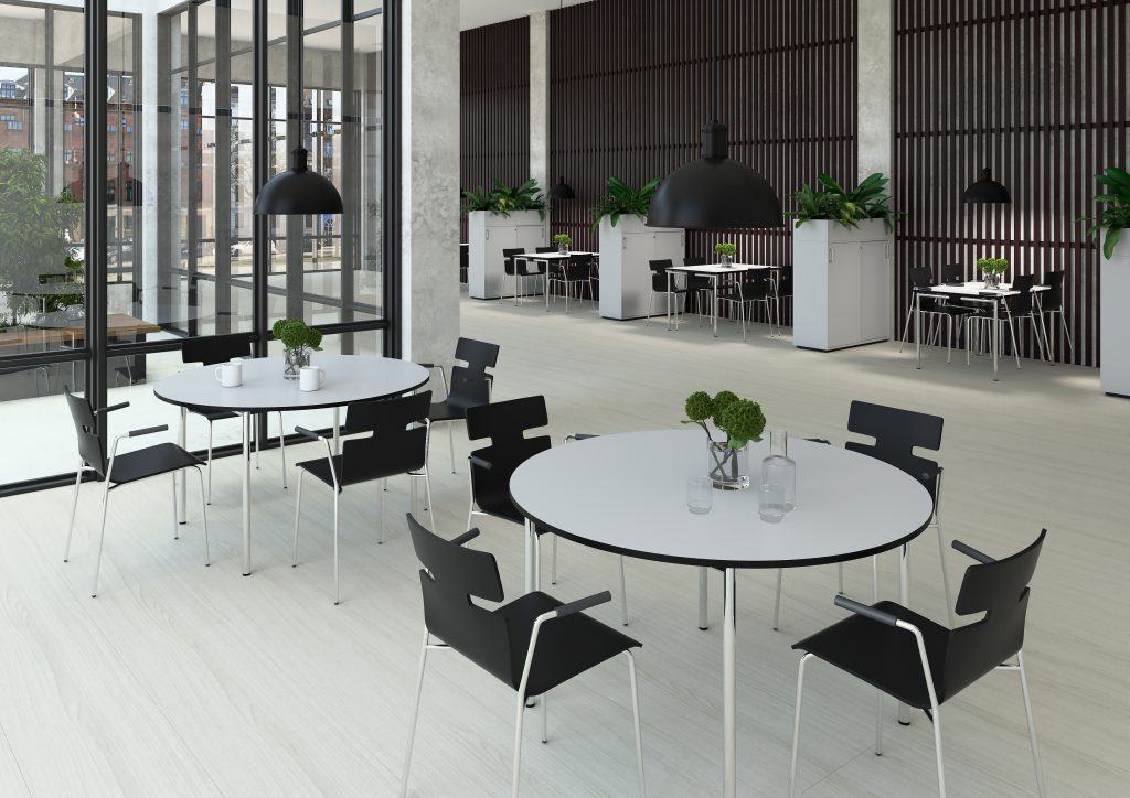 Når du sidder i kantinen, så skal man kunne sidde samlet, og spise enten sin madpakke eller det man nu får fra kantinen. Kantinen er et rigtigt vigtigt sted på arbejdspladsen, da det er der du har din pause og med vores sortiment af møbler er du sikker på du kan få en god pause. Du kan få alt fra langborde så du kan sidde samlet med dine kollegaer og mindre borde så man kan sidde i mindre grupper. Med vores kantinemøbler er du sikker på at få et fedt design til din kantine og en god kvalitet.